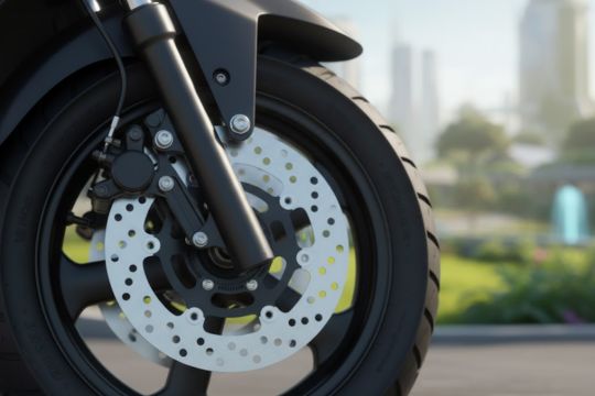 Sistema de freios a disco dianteiro e traseiro que garante respostas rápidas e frenagens seguras em qualquer situação.